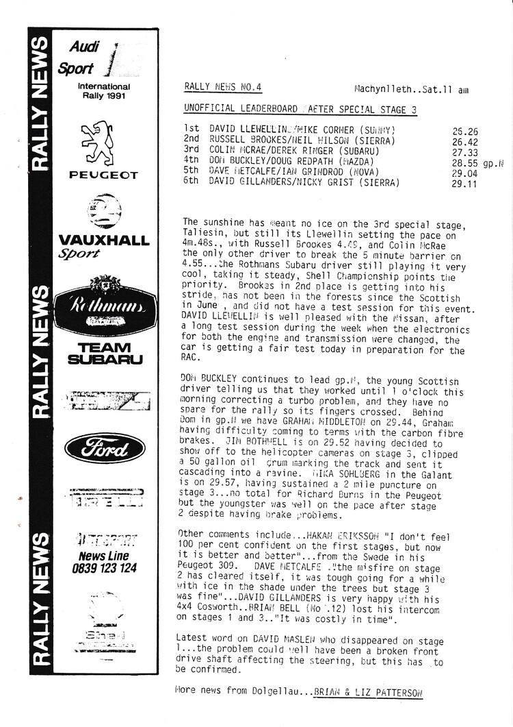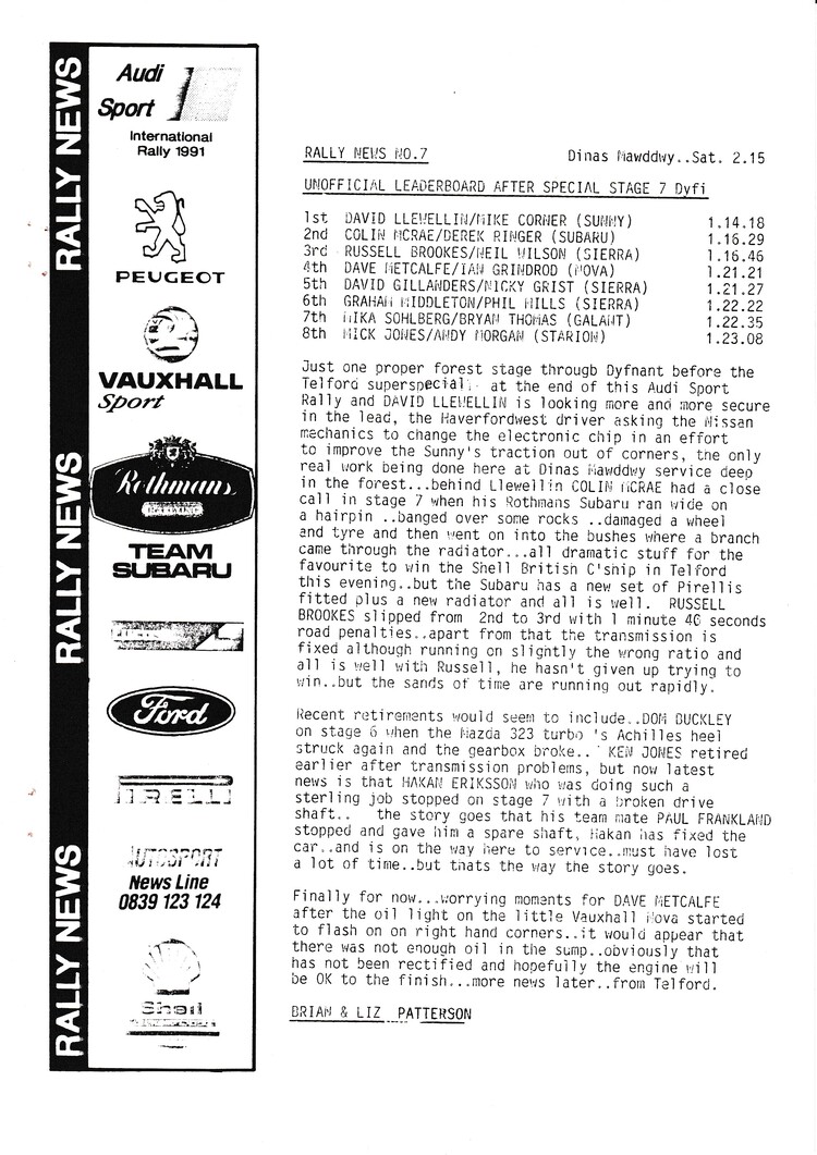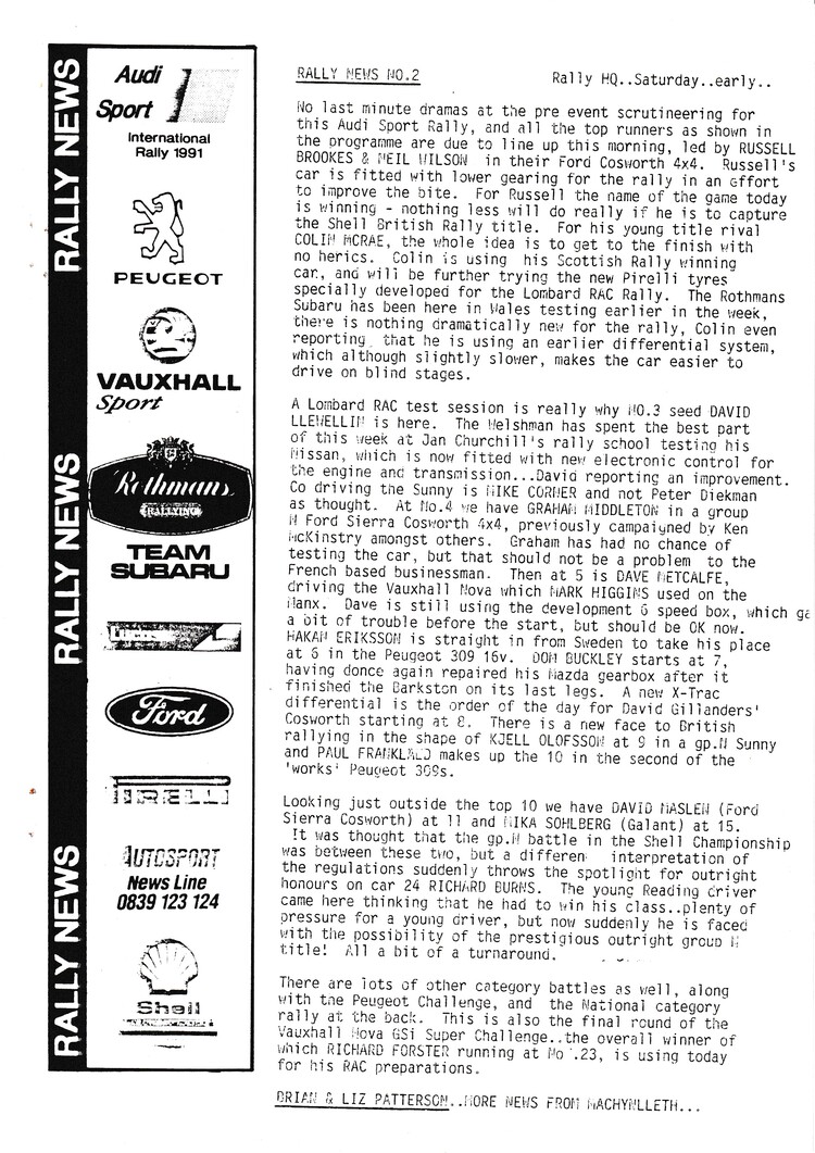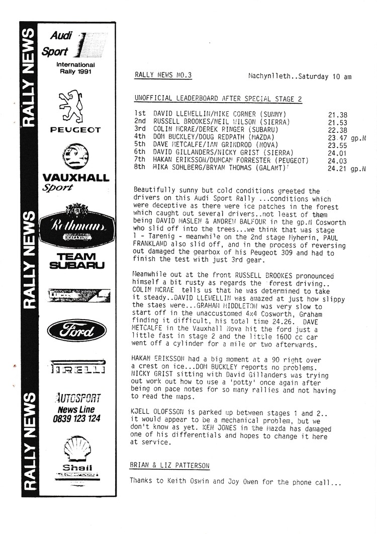 News bulletins issued by Brian and Liz Patterson during the rally - - select below to view Rally News 1 Rally News 2 Rally News 3 Rally News 4 Rally News 5 Rally News 6 Rally News 7 Rally News 8 Rally News 9 X Close Rally News 1 X Close Rally News 2 X Close Rally News 3 X Close Rally News 4 X Close Rally News 5 X Close Rally News 6 X Close Rally News 7 X Close Rally News 8 X Close Rally News 9