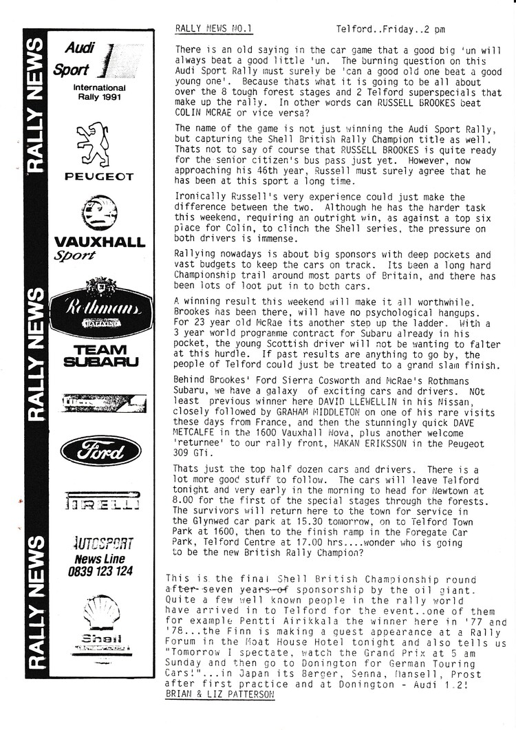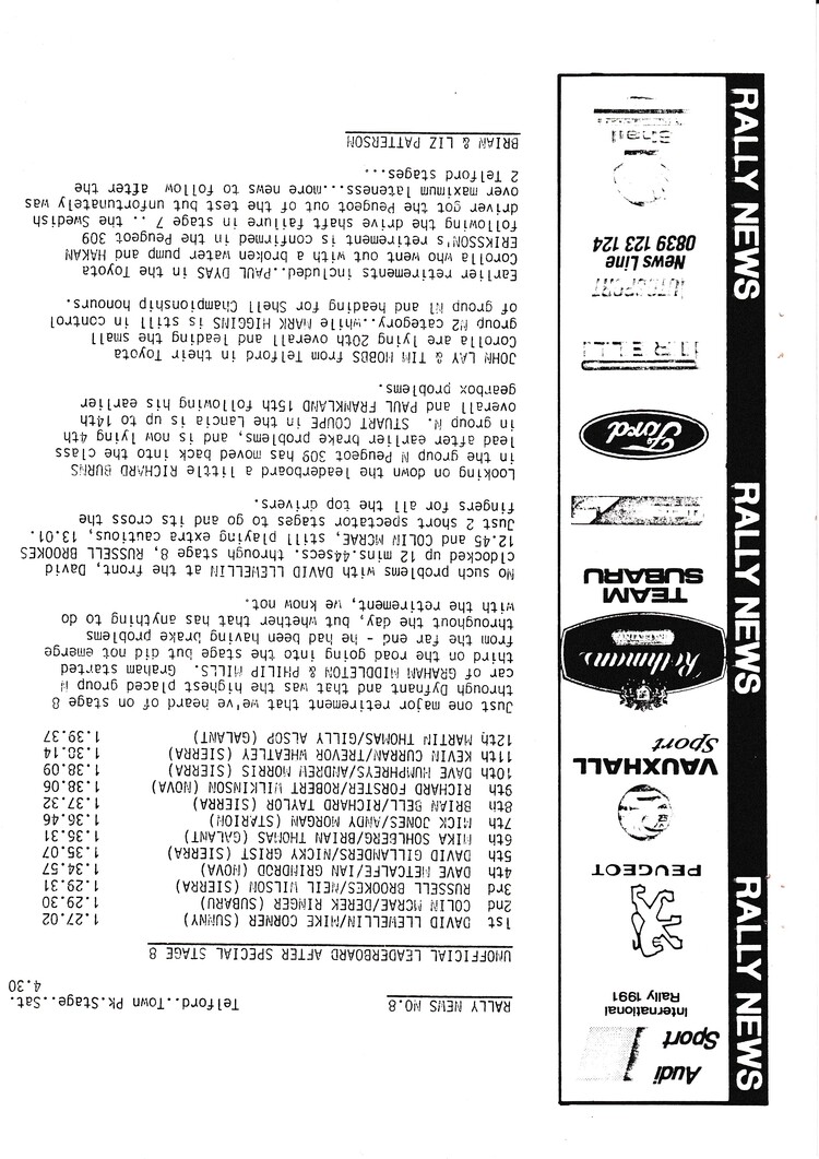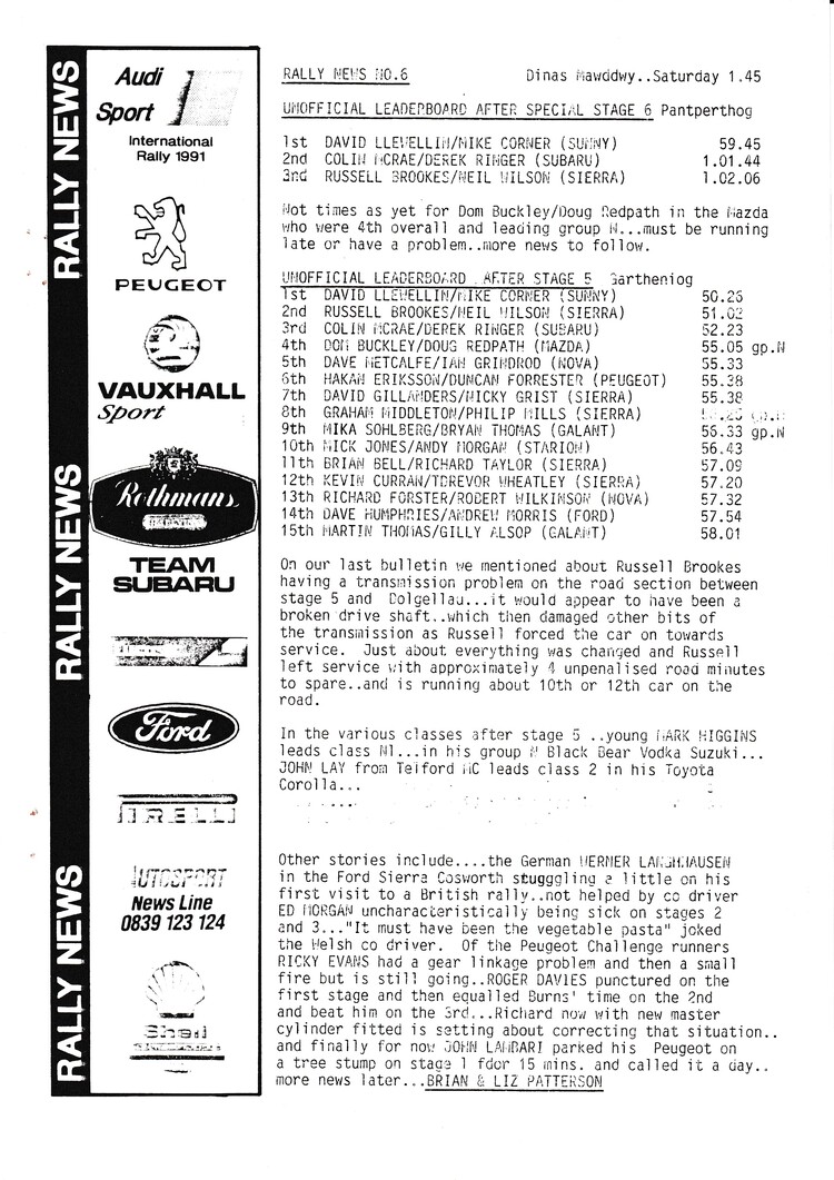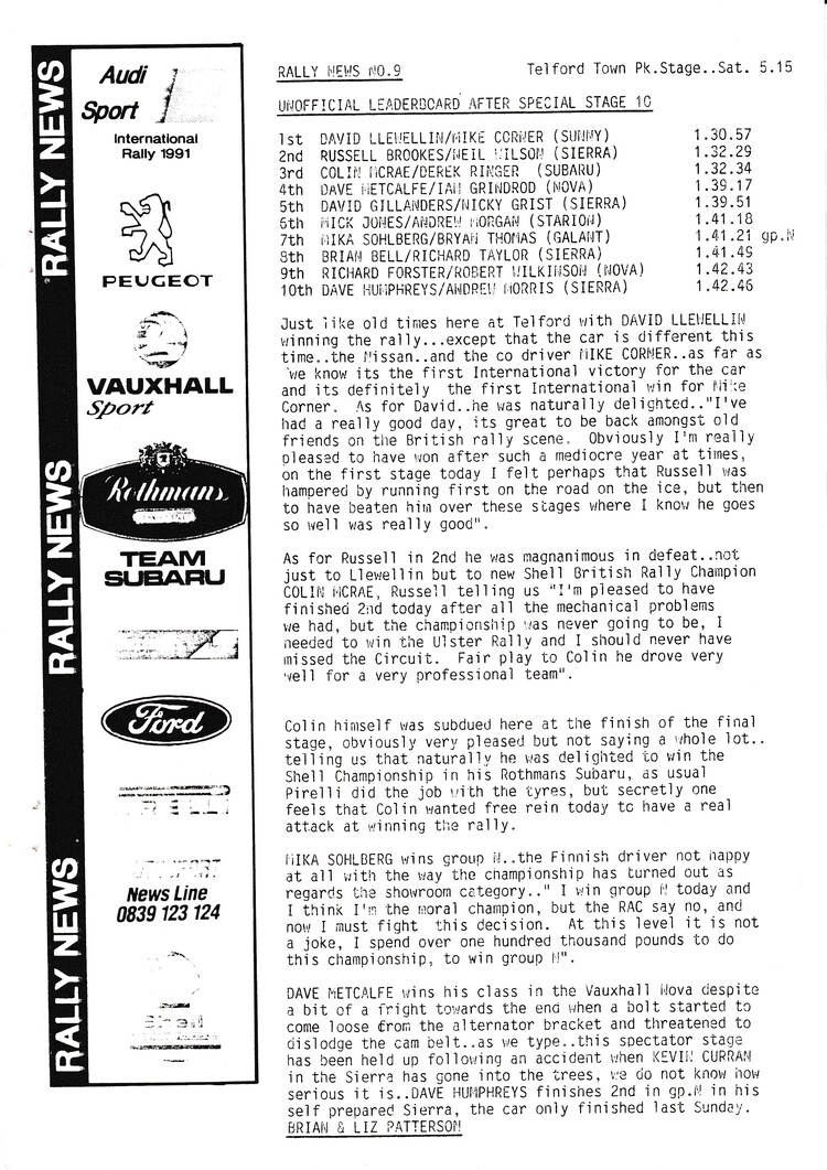 News bulletins issued by Brian and Liz Patterson during the rally - - select below to view Rally News 1 Rally News 2 Rally News 3 Rally News 4 Rally News 5 Rally News 6 Rally News 7 Rally News 8 Rally News 9 X Close Rally News 1 X Close Rally News 2 X Close Rally News 3 X Close Rally News 4 X Close Rally News 5 X Close Rally News 6 X Close Rally News 7 X Close Rally News 8 X Close Rally News 9